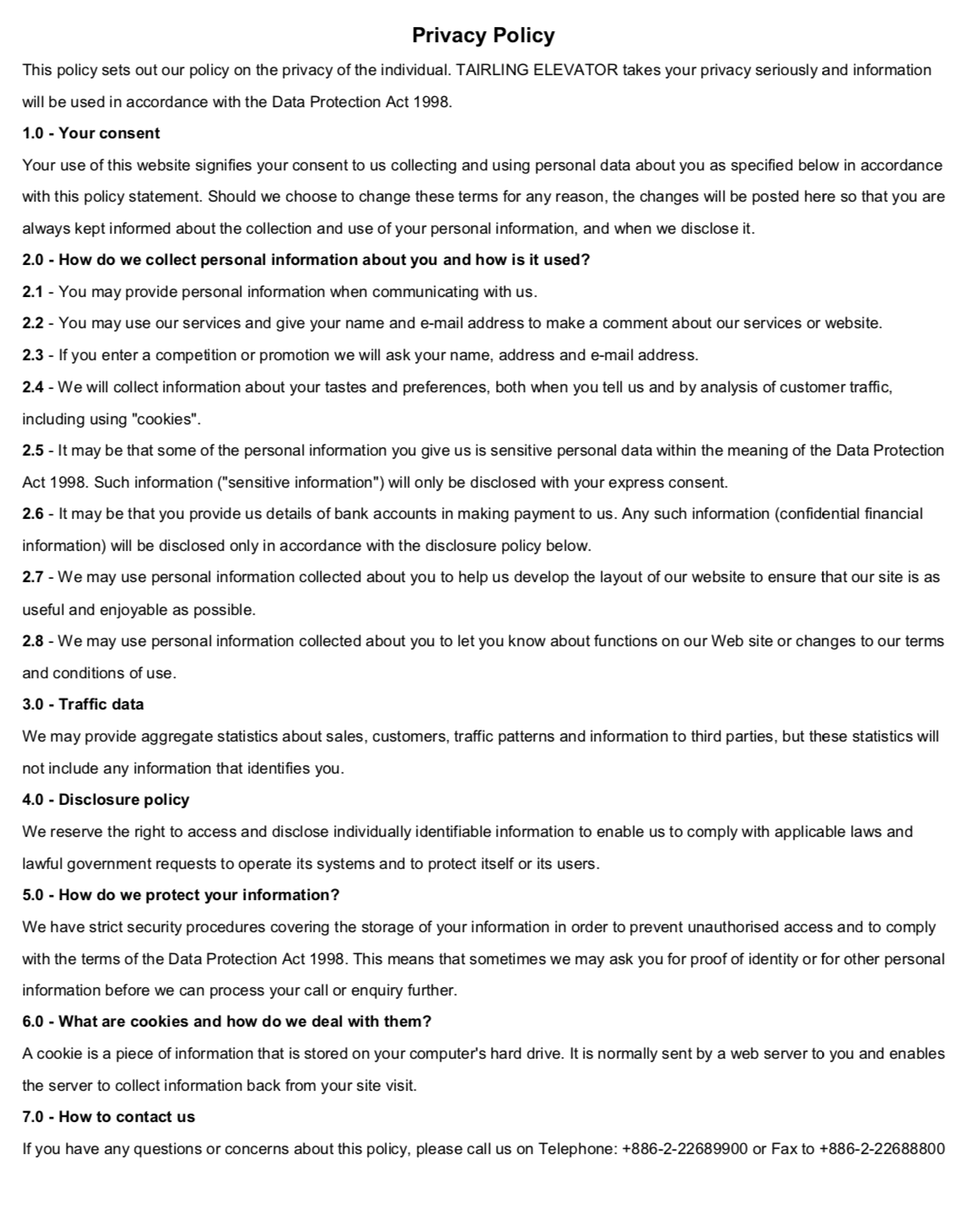 TAIRLING Elevator was established in 1971,